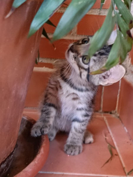 MARGOT, 2 MESES Protectora Felina sin ánimo de lucro, ubicada en Madrid, está cuidando y buscando un hogar a MARGOT, una preciosa cachorrita atigrada gris. MARGOT nació en una zona marginal de la comunidad de Madrid, donde niños y animales conviven a todas horas en la calle, juegan y tienen una relación muy cercana. Esta cachorrita, desde bebé, se ha relacionado con las personas, volviéndose una gatita muy fiable, confiada, cariñosa, equilibrada, juguetona y optimista. Su estancia en una casa de acogida, donde se la ha cuidado y mimado junto con sus hermanitos, no ha hecho más que acrecentar esos rasgos excepcionales de su carácter. Se entregará junto con alguno de sus hermanitos o por separado a una familia que ya tenga otro gatito para permitirle seguir socializando y aprendiendo. Se dará en adopción con contrato de adopción, cartilla y reconocimiento veterinario completo (desparasitada, testada de leucemia e inmunodeficiencia -negativa-, vacunada, identificada y con compromiso de castración). Si quieres un gato sano, confía en una Protectora de Animales, expertos en salud y comportamiento del animal.